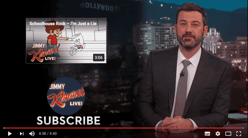 And here's single from Jimmy Kimmel's channel, where he asks you to sign upfield, atomic number 3 well as existence able to click on some other video.