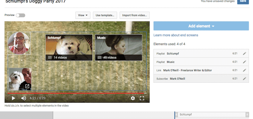 You may have to fiddle approximately with the sliders below the video though. YouTube automatically places your elements at the end of the video, but as I aforementioned, you can have them in the last 20 seconds of the video. So to extend their presence, pull the sliders on the timeline with your mouse.